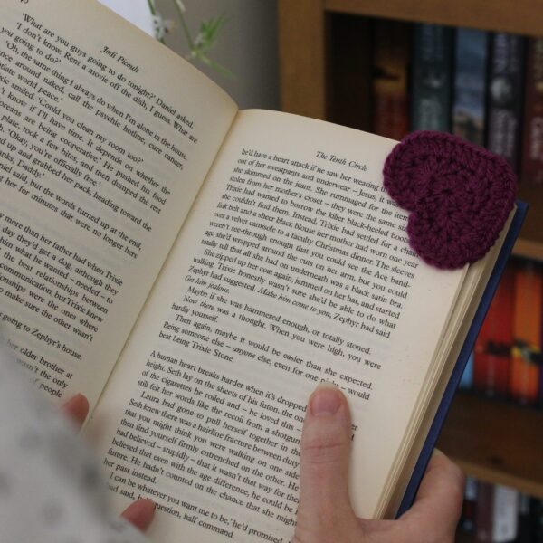 The perfect handcrafted stocking filler gift for any bookworm – a beautiful crocheted heart corner bookmark.
